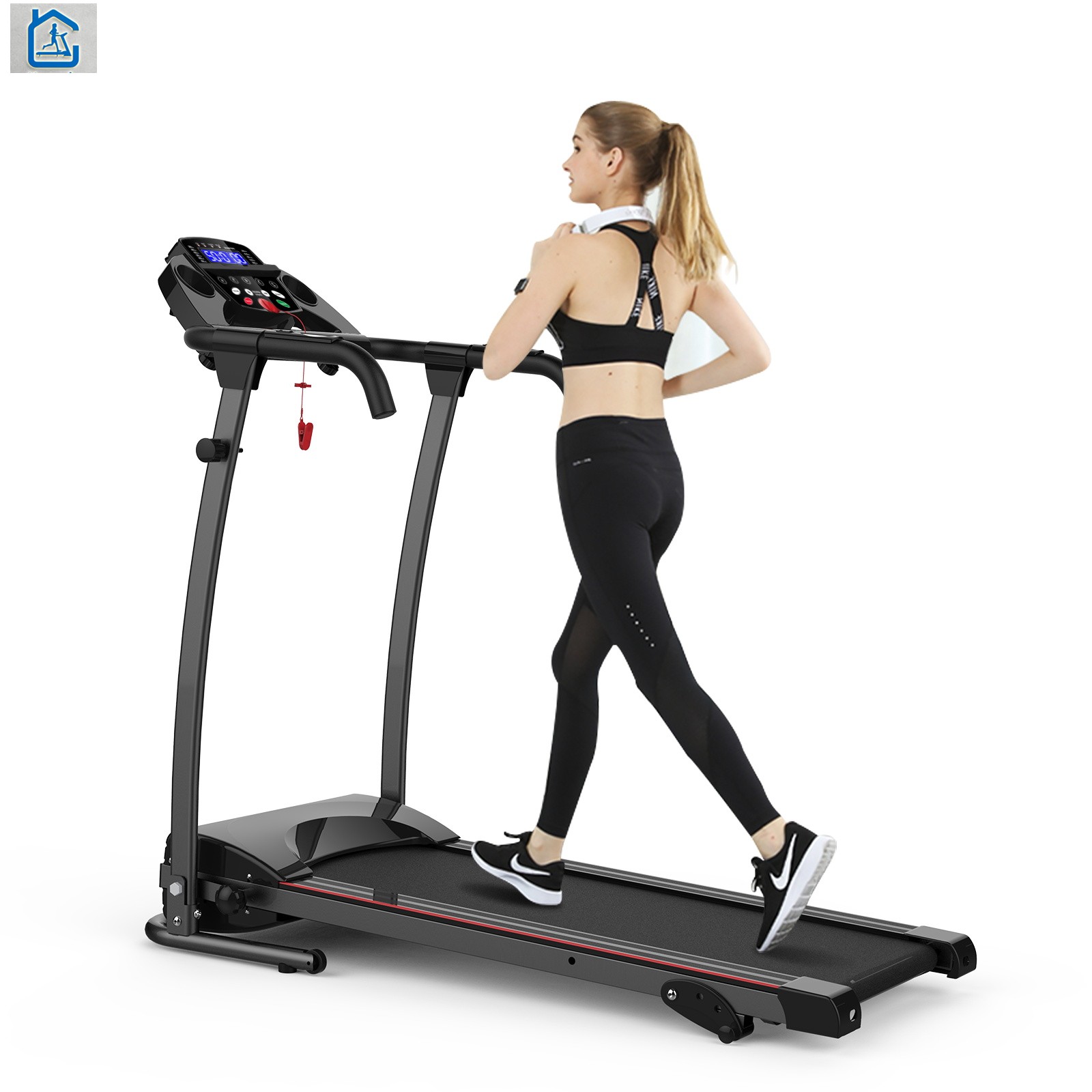 MULTI-FUNCTION LCD DIAPLAY- It includes running time, distance, speed, calories burned, heart rate with running data statistics readout and hand grip sensors for pulse monitoring. A safety emergency key with a clip connects you with treadmill, stops it immediately in an emergency, and protects you during exercise.